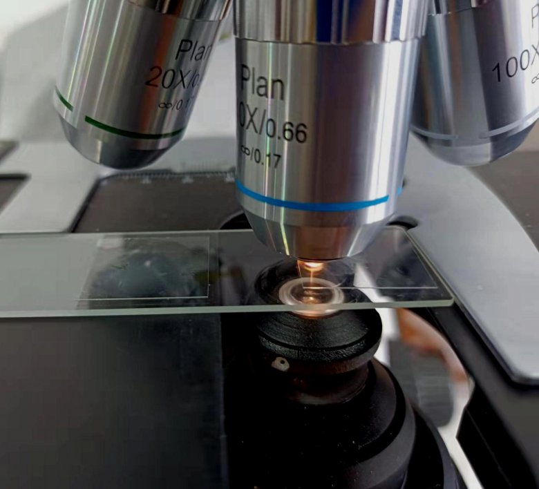 1)先将凝胶样品涂抹在显微镜载玻片上,用盖玻片轻轻按压盖上,轻轻按压间;